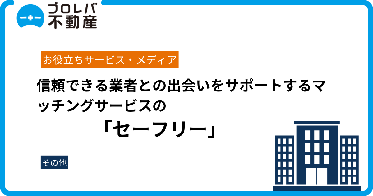 セーフリー(Safely)は、信頼できる業者との出会いをサポートするマッチングサービスです。暮らしの中で起こる様々な問題に対処できる優れたプロを見つけ、お悩みを解決します。簡単に信頼性の高い業者を見つけることで、より快適で安心した生活を実現するお手伝いをします。