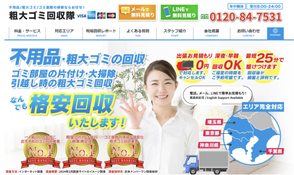 粗大ゴミ回収隊は、スピーディで便利なサービスが特徴です。最短25分で現地に到着し、急ぎの回収にも対応できます。見積もりは電話、メール、LINEで無料で受け付けており、出張費用も不要です。お客様が納得した上で作業を開始でき、料金も明確で安心です。