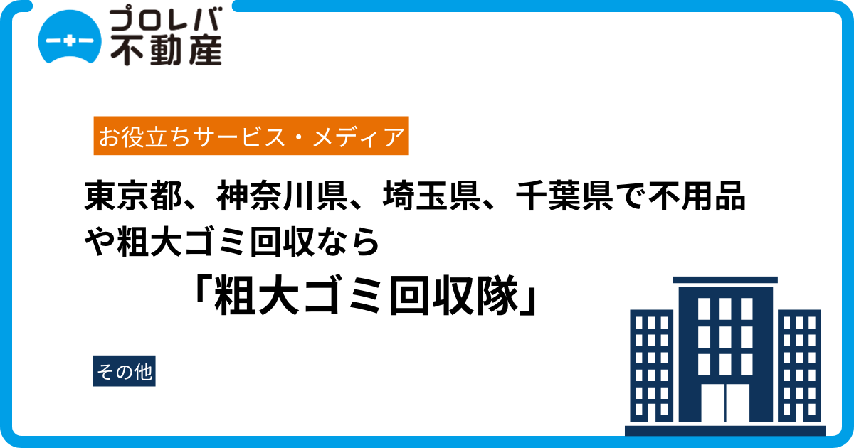 東京都、神奈川県、埼玉県、千葉県で不用品や粗大ゴミ回収を行っている「粗大ゴミ回収隊」の公式サイトに、プロレバ不動産が掲載されました。