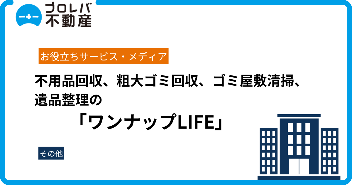 東京都、神奈川県、埼玉県、千葉県で不用品回収、粗大ゴミ回収、ゴミ屋敷清掃、遺品整理を提供する「ワンナップLIFE」の公式サイトに、プロレバ不動産が紹介されました。