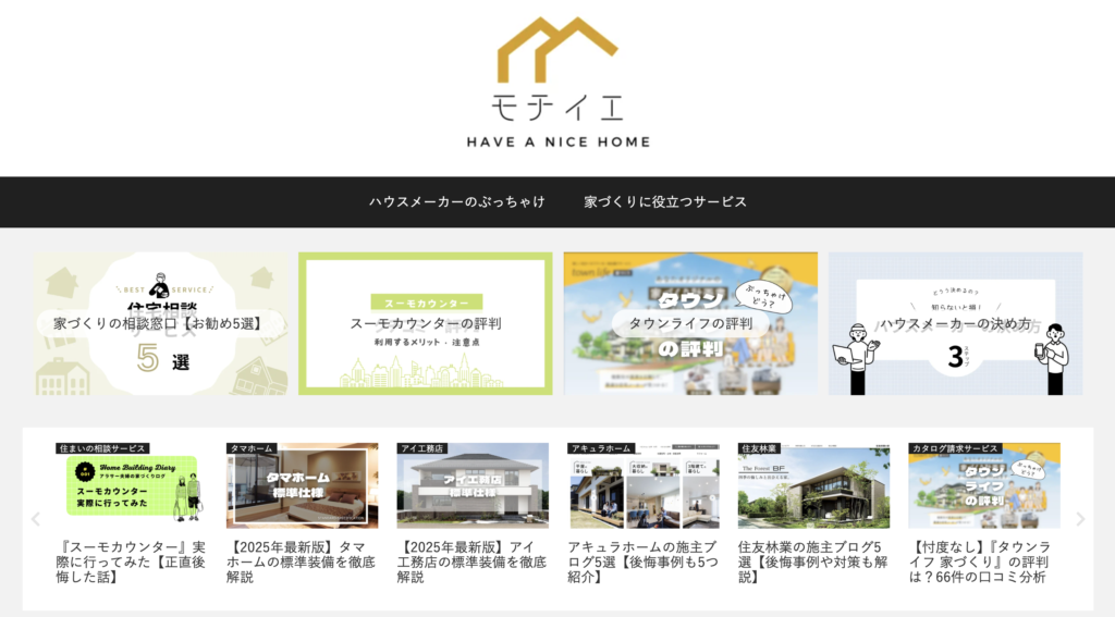 『モチイエ 』は注文住宅の検討者向けWebメディアです。ハウスメーカー別に後悔事例やハウスメーカーの選び方などを発信しています。