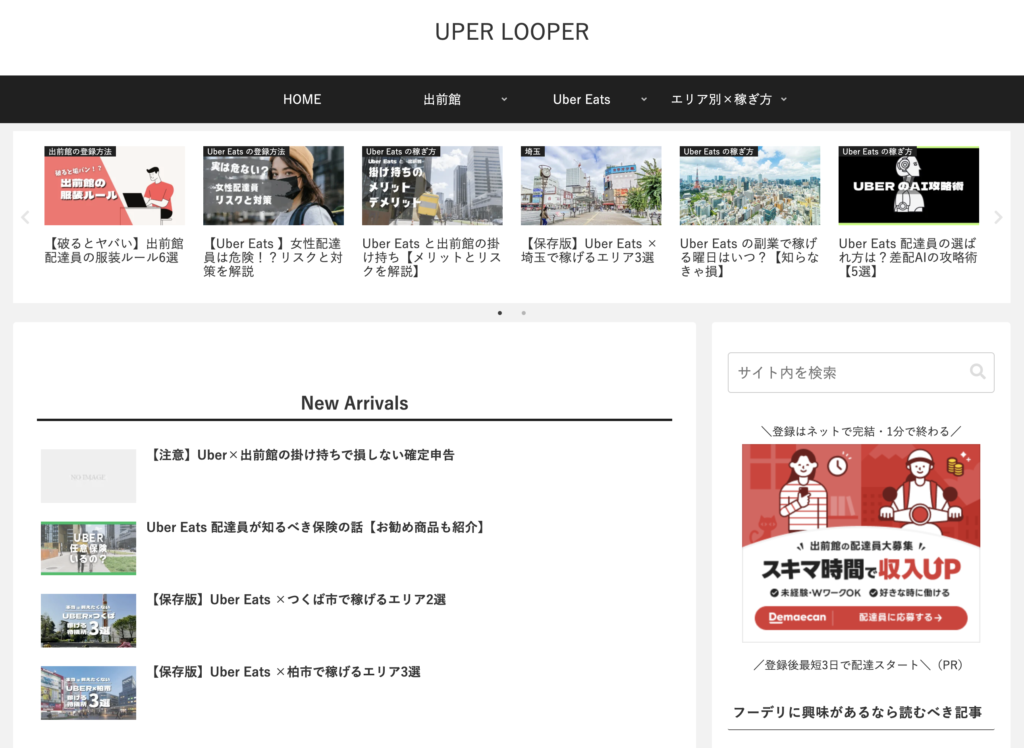 『ウーパールーパー』はフードデリバリーの副業ブログです。Uber Eats や出前館の配達員の副業に興味を持っている方向けに、稼ぎ方や稼げるエリアなどを解説しています。