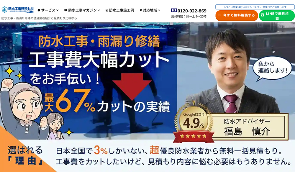 防水工事・雨漏り修繕の優良業者比較紹介と見積もりなら「防水工事見積もり.com」